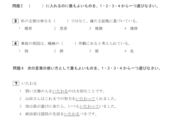 N1の問題は、他のレベルと比べても難易度が高く、多様な文型や語彙が出題されます。